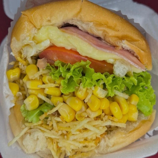 O clássico que nunca sai de moda! Pão, Presunto, Queijo, Ovo, Alface, Tomate e Milho.